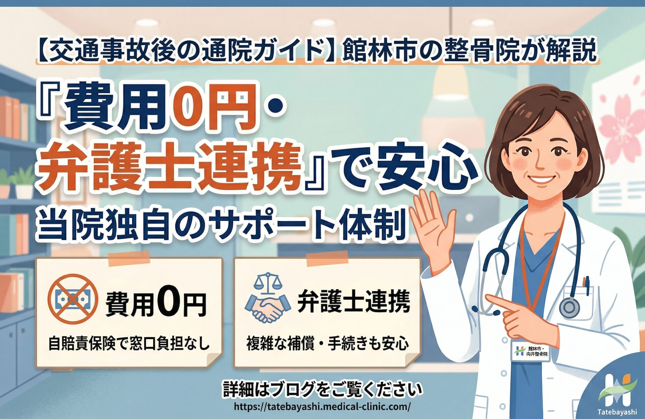 ポイント:「痛みがない」うちに受診することが大切です。事故後の痛みは時間差で出ることが多く、早期に記録・受診しておくことが後の治療・補償に直結します。